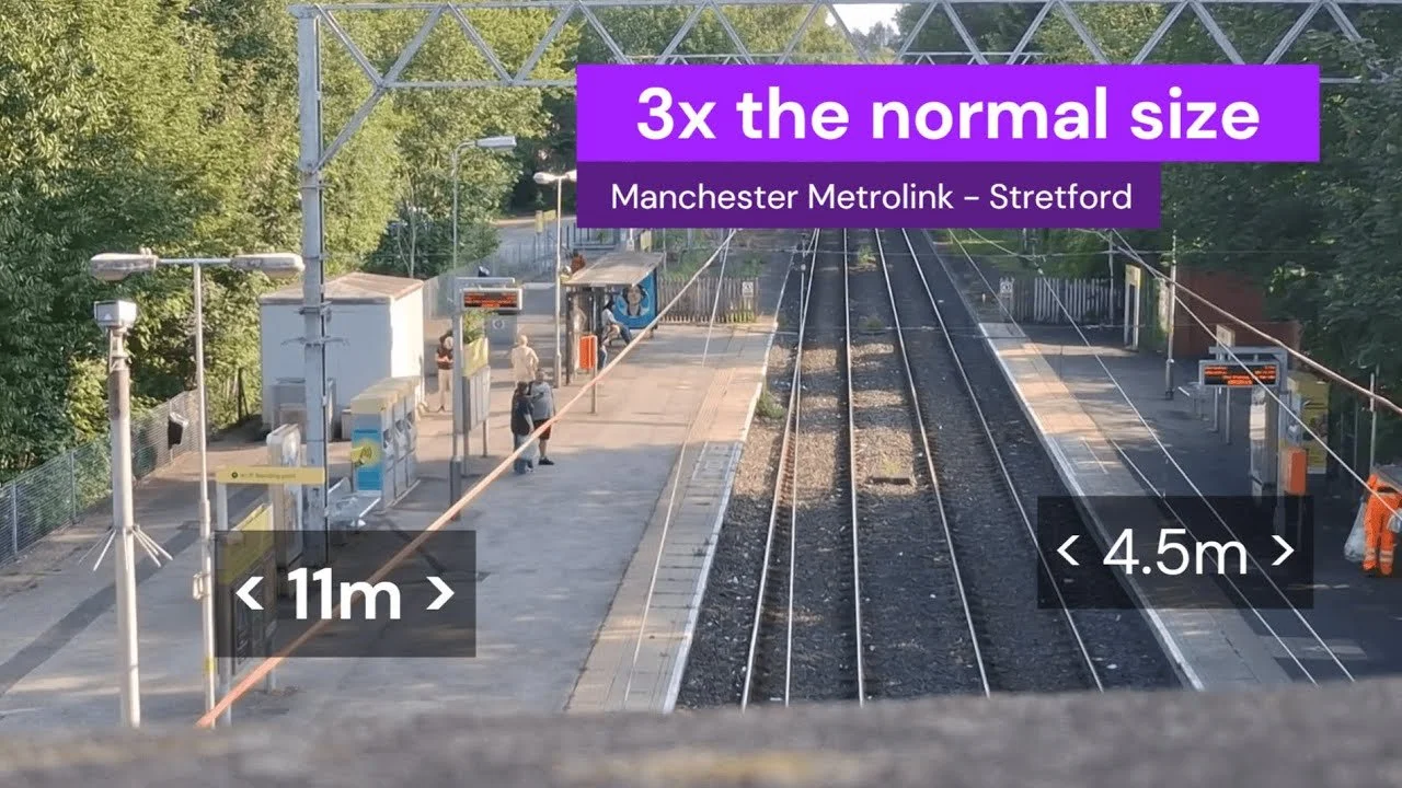 There’s no big venues or transport interchanges near Stretford tram stop, so why is just one of its platforms so wide? It may have to do with its previous identity as a railway station.