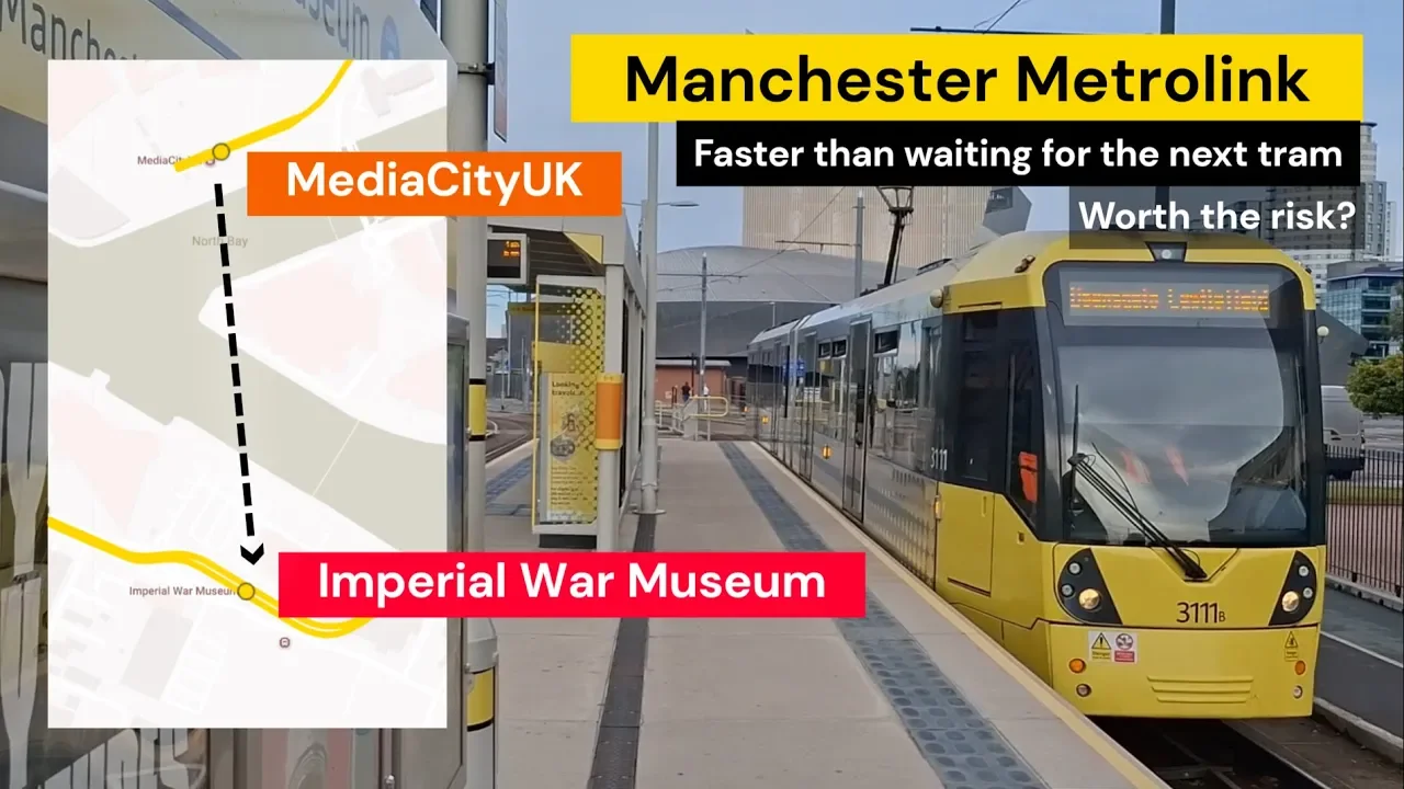 There’s a tram stop just a few minutes walk away from MediaCityUK on a different line. If you’ve just missed a tram, is it quicker to walk over to the Imperial War Museum and get a tram there?